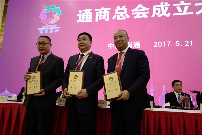 2017年5月21日下午,通商總會第一次會員代表大會隆重召開。會議通過了通商總會章程,選舉產生了通商總會執行會長、副會長和理事。安惠公司董事長陳惠與其他兩人當選為執行會長,南通市委副書記、市政府市長韓立明為他們授牌。