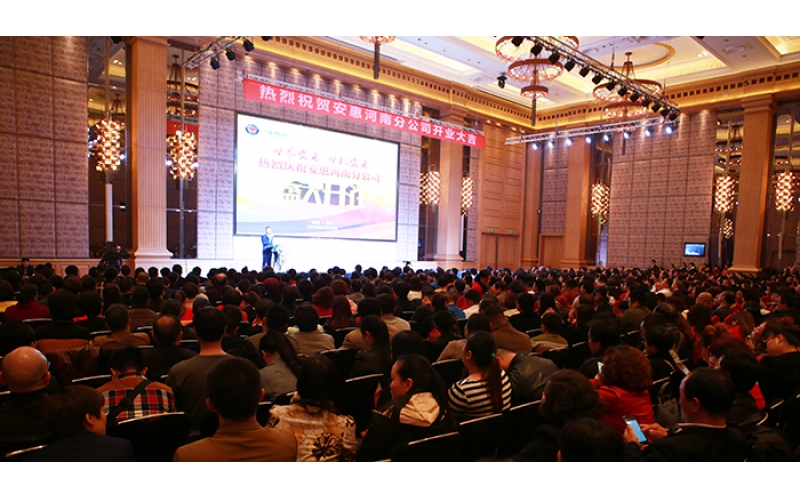 2016年3月20日,安惠河南分公司開業。簡樸的揭牌儀式上,陳惠董事長,施宏昌副總經理共同為分公司揭牌,總經理助理陳瑩瑩把安惠江海志愿者河南站的銅牌授予河南分公司總經理陳麗娟,100多位經銷商代表代表見證了這一重要時刻。開業慶典在鄭州裕達國貿酒店舉行,1200多位安惠優秀經銷商伙伴出席活動。從此在中原大地上,安惠人也有了自己的家。