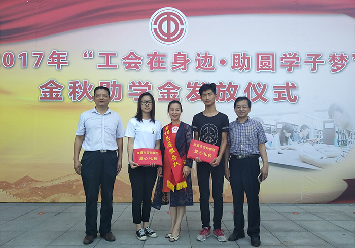 2017年8月24日上午,南通市總工會(huì)組織召開(kāi)“工會(huì)在身邊 助圓學(xué)子夢(mèng)”金秋助學(xué)活動(dòng)。安惠公司副董事長(zhǎng)陸漢萍出席活動(dòng)。她心系寒門(mén)學(xué)子,積極響應(yīng)并加入到勞模志愿服務(wù)隊(duì)伍當(dāng)中,通過(guò)安惠愛(ài)心基金定向捐助張沙宇、秦玉婷兩位困難職工的子女,圓了他們的上學(xué)夢(mèng)。她勉勵(lì)兩位學(xué)子努力學(xué)習(xí),學(xué)有所有成,回報(bào)社會(huì);同時(shí)也承諾,安惠人將一如既往地關(guān)注、幫助到他們的成長(zhǎng)。