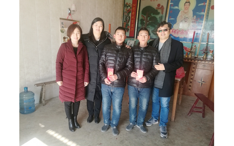 2018年2月13日,安惠黨委市場(chǎng)支部的江海志愿者們來(lái)到了如皋市東陳鎮(zhèn)北莊村看望資助的馮張隱、張升兄弟倆,將愛(ài)心款和愛(ài)心物資親自交到他們手中。