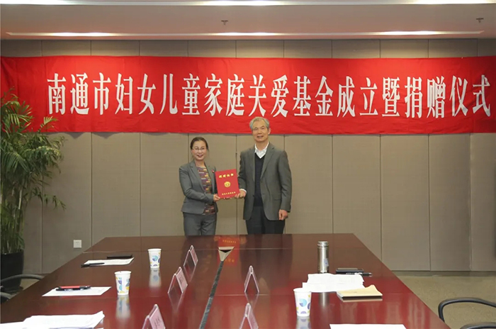 2020年4月20日,南通市婦女兒童家庭關愛基金成立。南通市女企業家協會副會長、安惠公司副董事長陸漢萍為基金注入第一筆愛心善款10萬元。