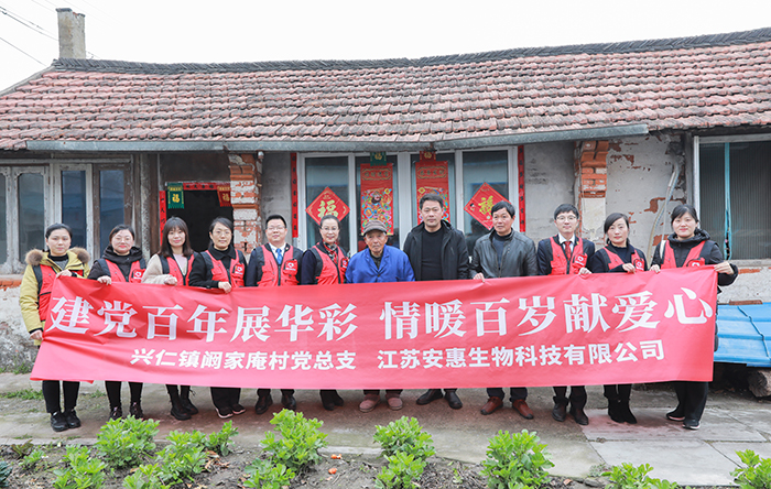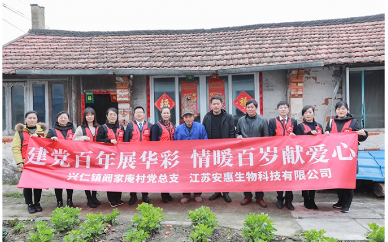 2021是中國共產黨建黨100周年,在這個特殊的年份,安惠黨委、工會、團委聯合組織開展愛心“雙百”暨菌物健康科普走進美麗鄉村志愿服務活動。安惠公司是省市區三級文明單位,2020年,為進一步落實省文明辦、省農業農村廳的工作要求,在南通市文明辦的牽頭下,安惠聯合工會與通州區興仁鎮闞家庵村結對,開展精神文明共建。